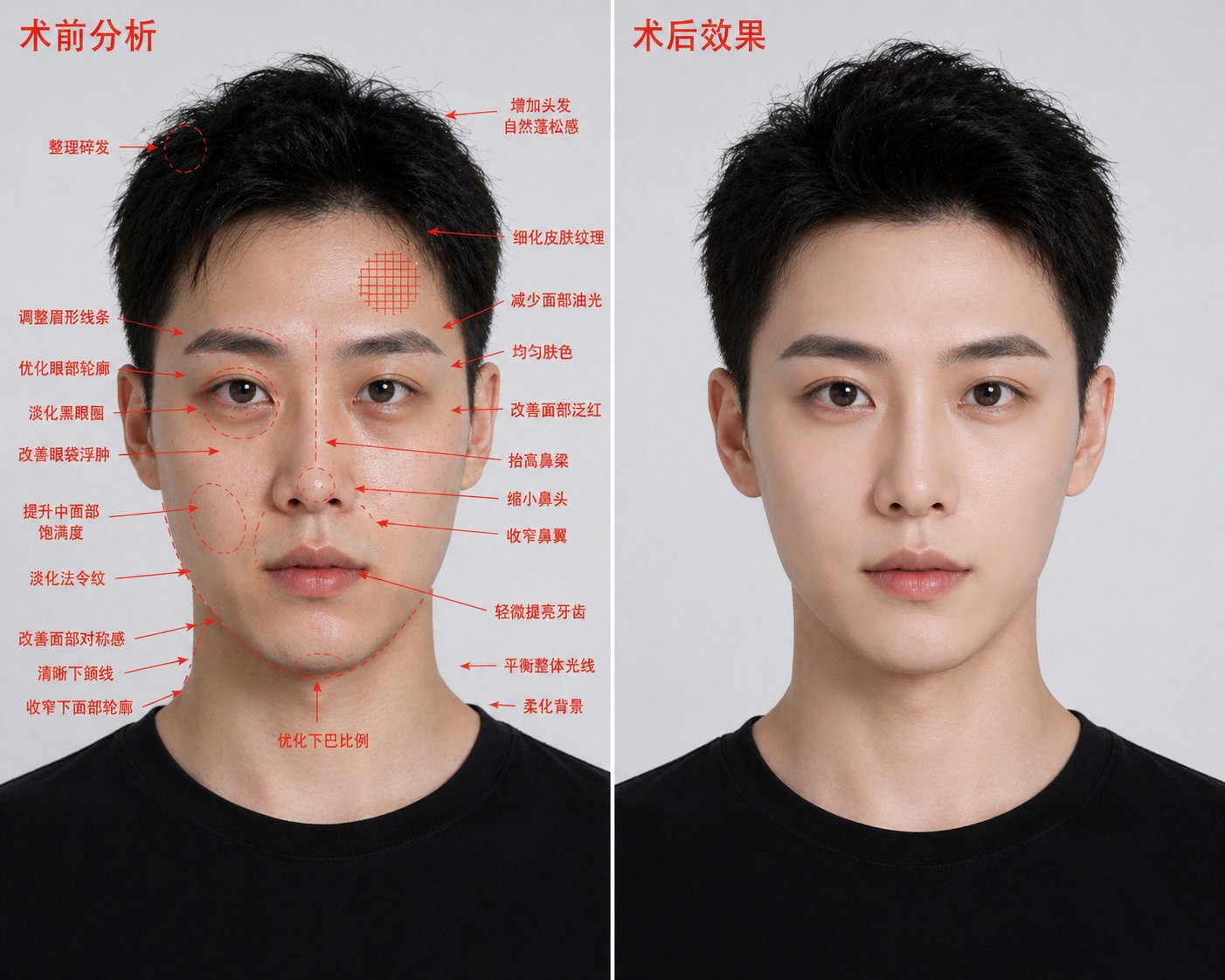 最终效果必须真实、高清、专业、高级,并且前后差异显著,一眼可见整容医美前后变化。