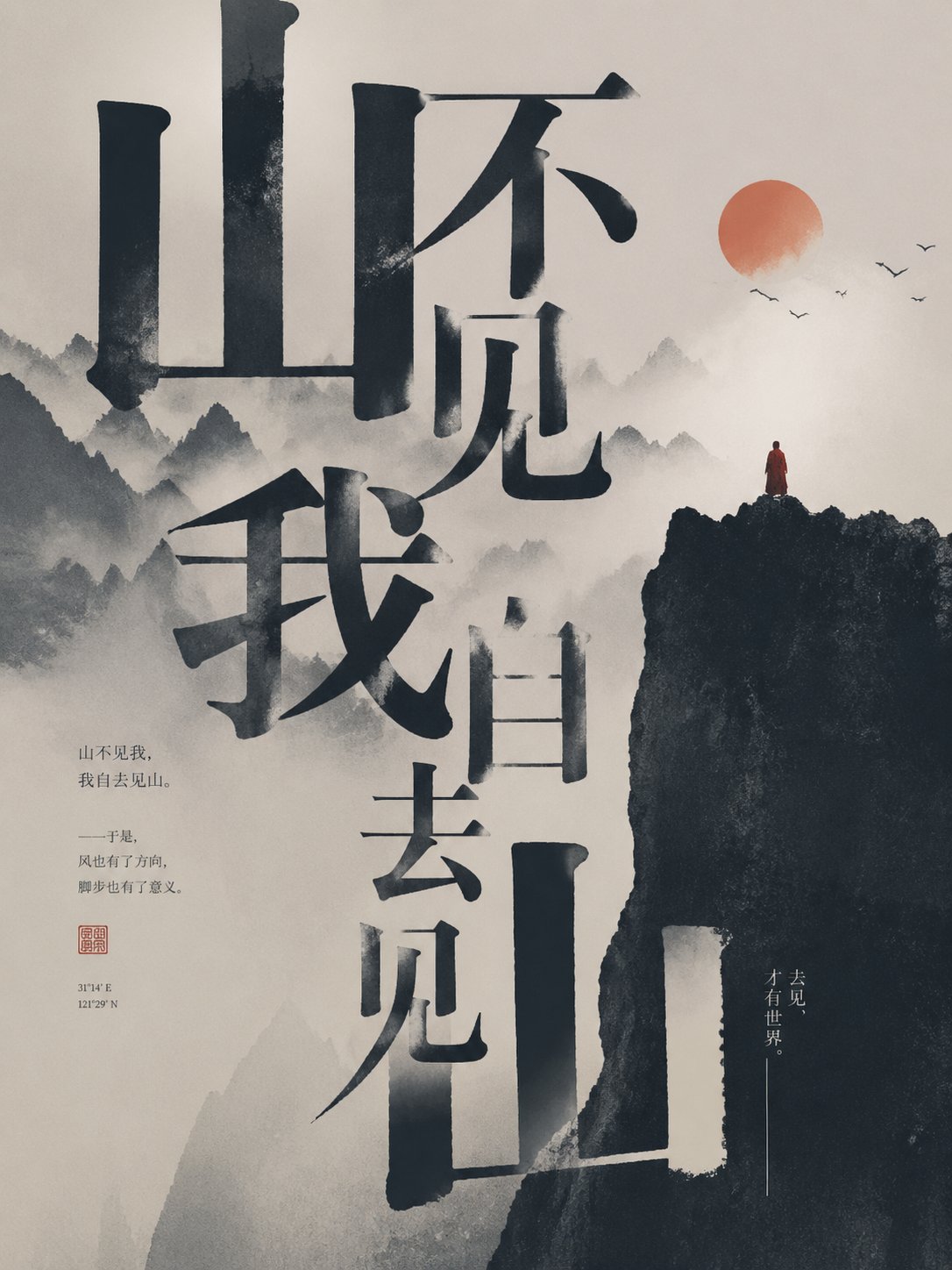 这张海报的目标不是“把字画出来”,也不是“做一张带说明文字的插画”,而是要把这个词语或文字背后的精神状态、命运质感、情绪张力与象征意味,转译成一张高级、极简、克制、展览级、强排版、强隐喻、强情绪、强记忆点、并且图文高度融合的视觉海报。